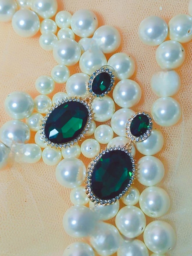 Λαμπερά σκουλαρίκια με πράσινα κρύσταλλα. Με αριστοκρατική φινέτσα και διαχρονική πολυτέλεια.