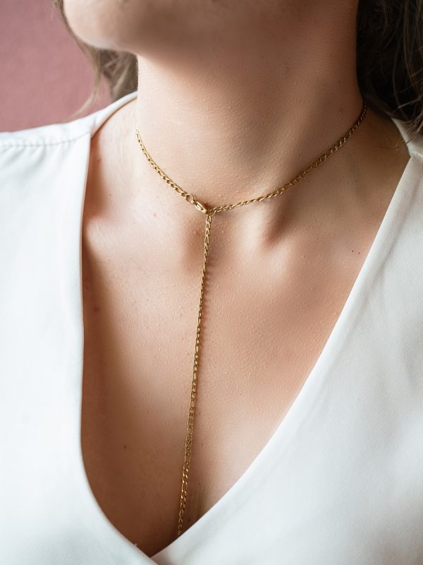 Αυτό το κομψό και διακριτικό κολιέ είναι ένας συνδυασμός choker και lariat δημιουργώντας ένα εκλεπτυσμένο και μοντέρνο look.